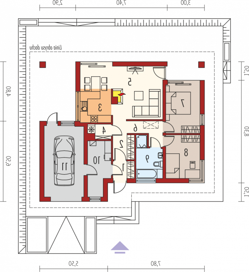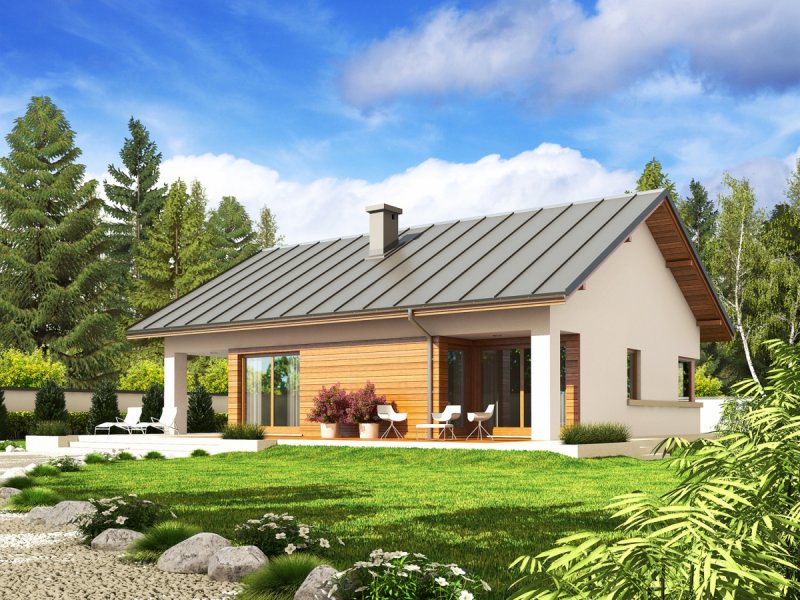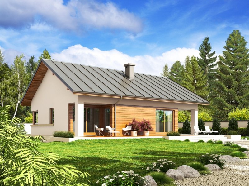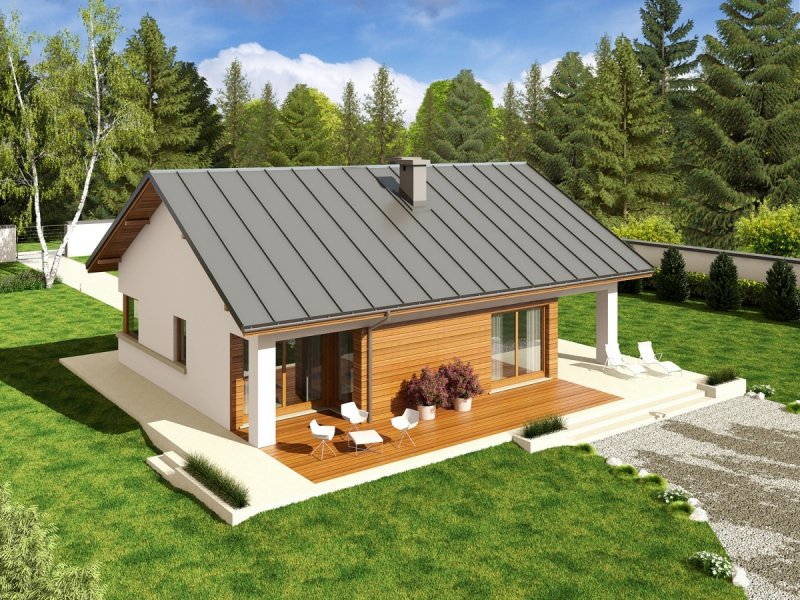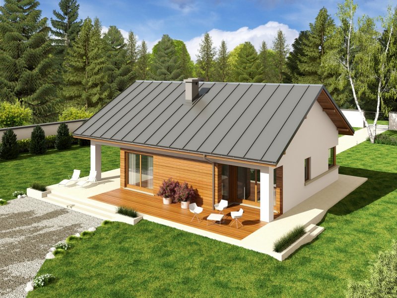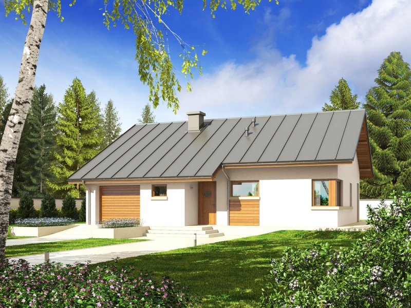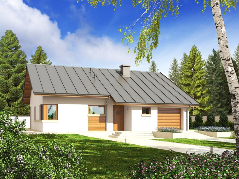 Dom parterowy, niepodpiwniczony, z garażem jednostanowiskowym. Przeznaczony dla 2-3-osobowej rodziny. W strefie dziennej znajdują się: salon z kominkiem, jadalnia oraz kuchnia ze spiżarnią. Strefę nocną tworzą dwie sypialnie oraz wygodna łazienka. Zaplanowano tu również duże pomieszczenie gospodarcze – kotłownię. Atrakcyjna bryła Tori III G1 ECONOMIC (wersja A) w parze z tradycyjnymi materiałami zastosowanymi na elewacji tworzy ciekawy efekt wizualny. Układ domu został zaplanowany z najwyższą troską o jego funkcjonalny i ergonomiczny charakter. Dużym atutem Tori III G1 ECONOMIC (wersja A) jest ciekawie zaprojektowany, częściowo zadaszony taras – idealny na relaks w towarzystwie rodziny i przydomowej zieleni. Tori III G1 ECONOMIC to dom ekonomiczny w realizacji i późniejszej eksploatacji, który doskonale wpisze się w każdy krajobraz. Prosta konstrukcja w połączeniu ze sprawdzonym zestawem rozwiązań sprawia, że dom wyróżnia ergonomia i komfort użytkowy. Ograniczenie detali architektonicznych zachęca do zabawy z kolorystyką elewacji. Kolekcja ECONOMIC – domy ładne i tanie w budowie Kolekcja ECONOMIC została zaprojektowana z troską o ekonomiczny charakter budowy. Prosta bryła, ograniczona ilość detali architektonicznych oraz zminimalizowana liczba pionów instalacyjnych sprawia, że domy z Kolekcji ECONOMIC są tanie w realizacji i późniejszej eksploatacji. Atuty Kolekcji ECONOMIC • Prosta konstrukcja domu – niskie koszty budowy • Standardowe wymiary stolarki okiennej – najtańsze rozwiązania profili okiennych • Brak okrągłych okien, rozbudowanych przeszkleń i rolet • Nowoczesna interpretacja klasycznej bryły domu • Optymalny układ funkcjonalny • Idealne proporcje budynku – atrakcyjny efekt estetyczny • Czysta forma bez zbędnych detali Istnieje możliwość: - podpiwniczenia - zbliźniaczenia - adaptacji poddasza na strych