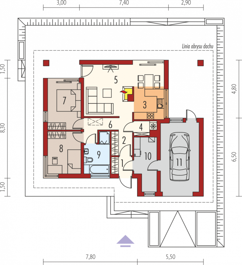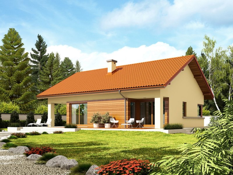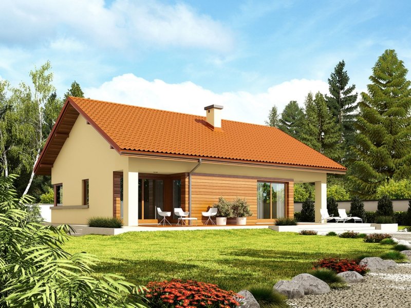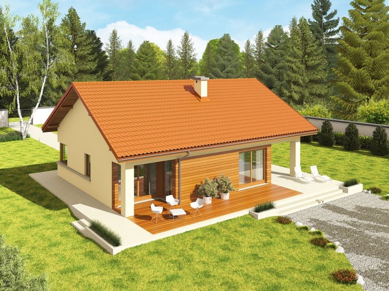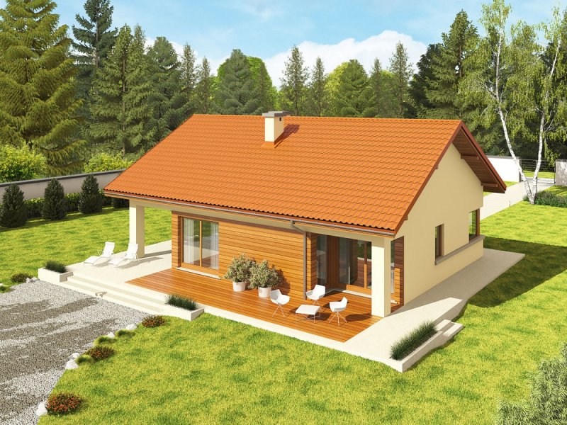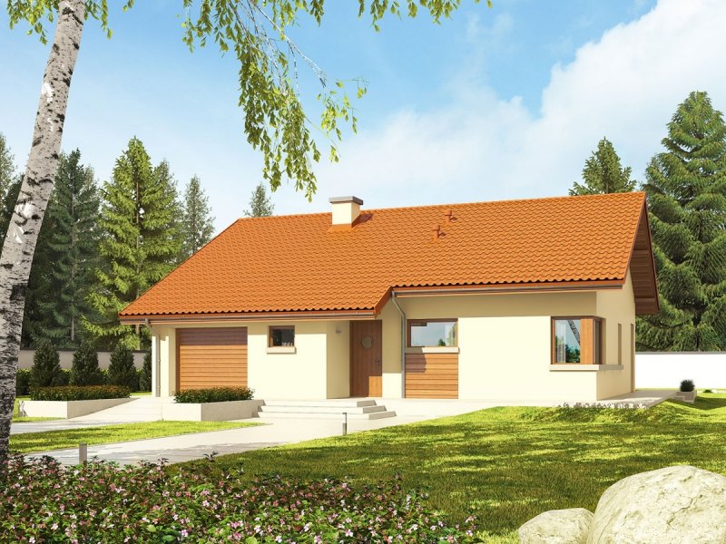 Dom parterowy, niepodpiwniczony, z garażem jednostanowiskowym. Przeznaczony dla 2-3-osobowej rodziny. W strefie dziennej znajdują się: salon z kominkiem, jadalnia oraz kuchnia ze spiżarnią. Strefę nocną tworzą dwie sypialnie oraz wygodna łazienka. Zaplanowano tu również duże pomieszczenie gospodarcze – kotłownię. Atrakcyjna bryła Tori III G1 ECONOMIC w parze z tradycyjnymi materiałami zastosowanymi na elewacji tworzy ciekawy efekt wizualny. Układ domu został zaplanowany z najwyższą troską o jego funkcjonalny i ergonomiczny charakter. Dużym atutem Tori III G1 ECONOMIC jest ciekawie zaprojektowany, częściowo zadaszony taras – idealny na relaks w towarzystwie rodziny i przydomowej zieleni. Tori III G1 ECONOMIC to dom ekonomiczny w realizacji i późniejszej eksploatacji, który doskonale wpisze się w każdy krajobraz. Prosta konstrukcja w połączeniu ze sprawdzonym zestawem rozwiązań sprawia, że dom wyróżnia ergonomia i komfort użytkowy. Ograniczenie detali architektonicznych zachęca do zabawy z kolorystyką elewacji. Kolekcja ECONOMIC – domy ładne i tanie w budowie Kolekcja ECONOMIC została zaprojektowana z troską o ekonomiczny charakter budowy. Prosta bryła, ograniczona ilość detali architektonicznych oraz zminimalizowana liczba pionów instalacyjnych sprawia, że domy z Kolekcji ECONOMIC są tanie w realizacji i późniejszej eksploatacji. Atuty Kolekcji ECONOMIC • Prosta konstrukcja domu – niskie koszty budowy • Standardowe wymiary stolarki okiennej – najtańsze rozwiązania profili okiennych • Brak okrągłych okien, rozbudowanych przeszkleń i rolet • Nowoczesna interpretacja klasycznej bryły domu • Optymalny układ funkcjonalny • Idealne proporcje budynku – atrakcyjny efekt estetyczny • Czysta forma bez zbędnych detali Istnieje możliwość: - podpiwniczenia - zbliźniaczenia - adaptacji poddasza na strych