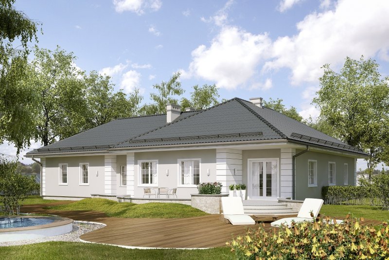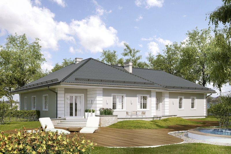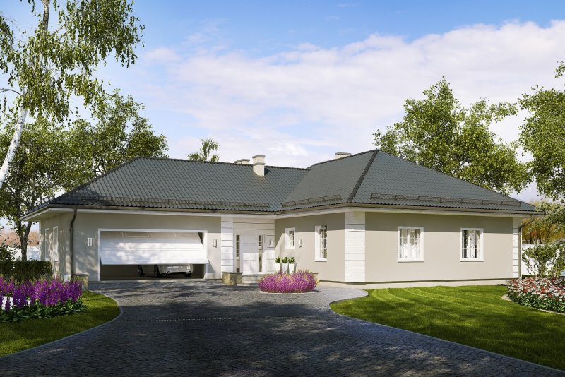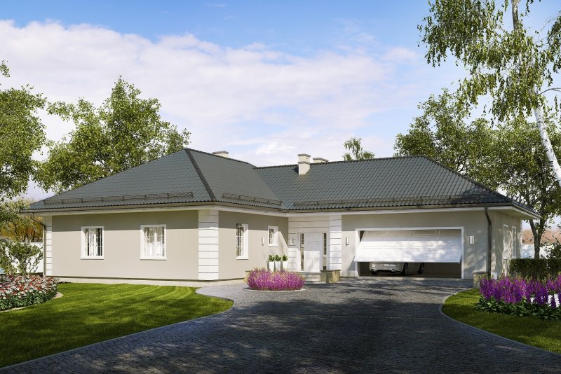 Projekt budynku mieszkalnego, jednorodzinnego, parterowego, niepodpiwniczonego z garażem. Do projektu dołączone jest zestawienie: stali, więźby dachowej oraz stolarki drzwiowej i okiennej, jak również bezpłatna zgoda na dokonanie zmian.