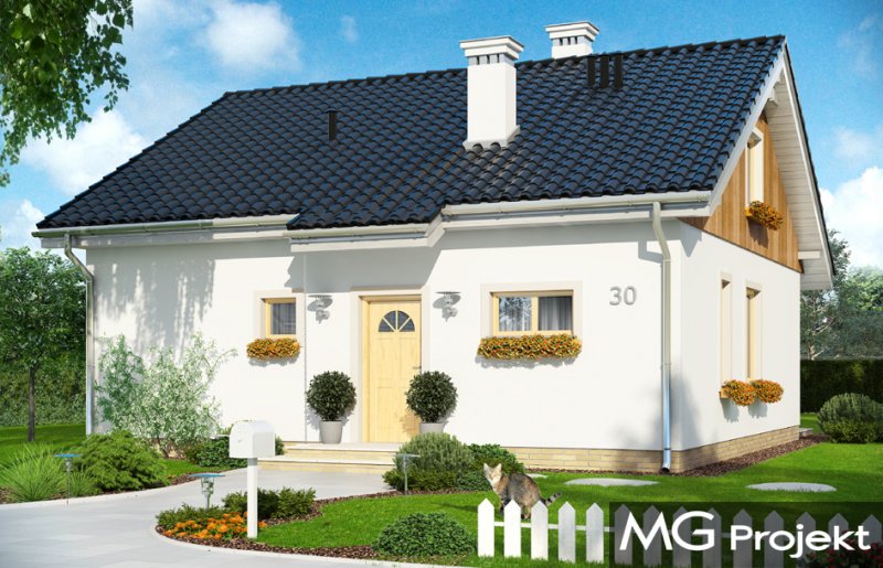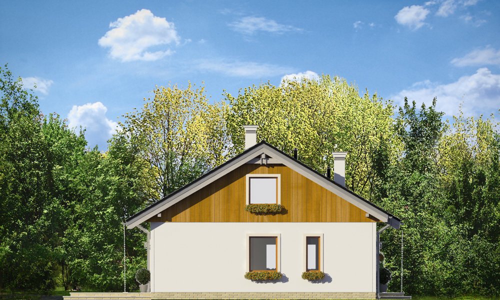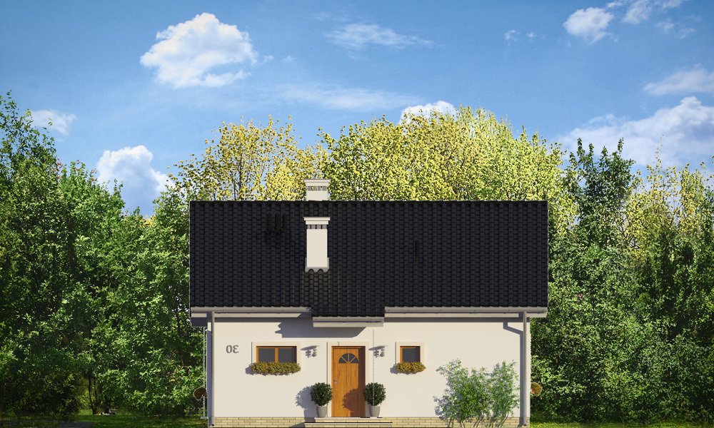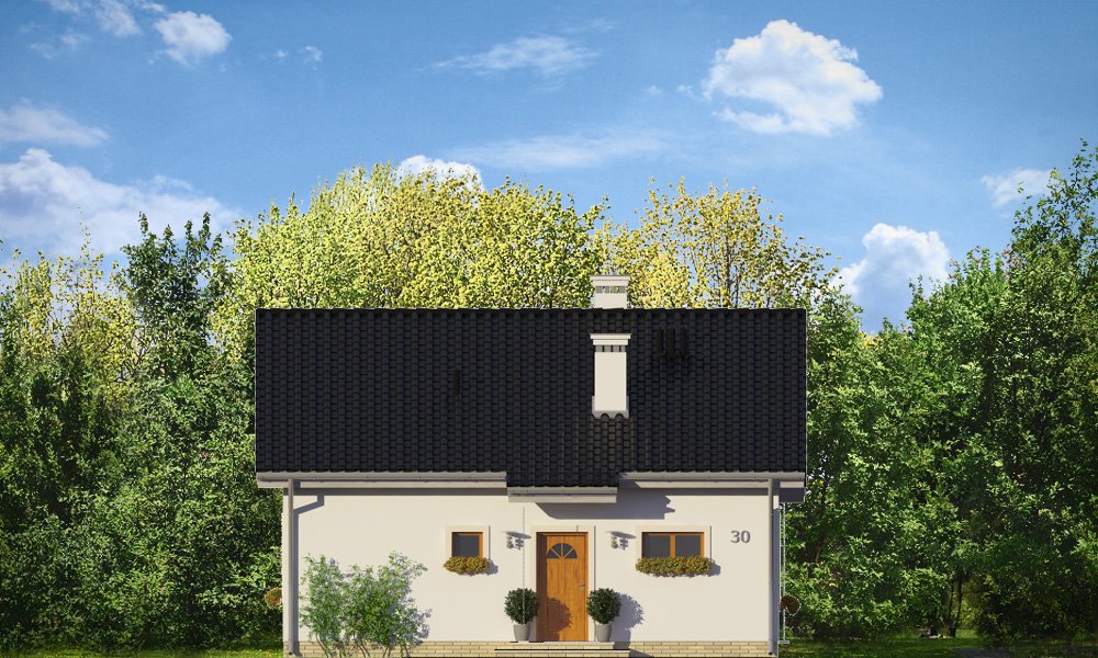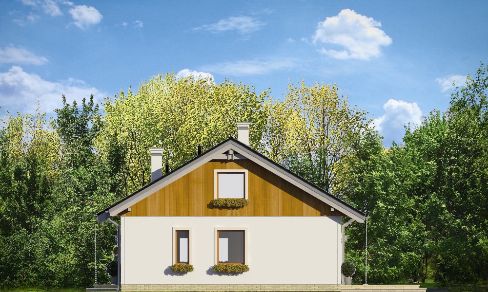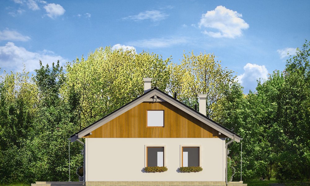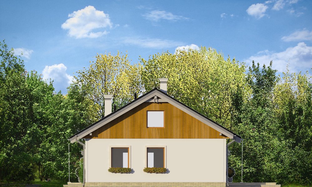 Zosia 2 to wariantowa wersja popularnej „Zosi”. Prosty jednorodzinny domek został wzbogacony o dodatkowy strych do możliwej późniejszej adaptacji na poddasze użytkowe. Dom ma możliwie najprostszą bryłę - zbudowany na planie kwadratu o boku 9,5 metra, przekryty jest dwuspadowym dachem. Taka konstrukcja zapewnia niedrogą budowę. Zwarta bryła mieści w sobie funkcjonalne wnętrze. Dzięki dobremu stosunkowi powierzchni przegród zewnętrznych do kubatury, dom jest ciepły i w łatwy sposób może być energooszczędny. Wnętrze domu: na parterze przewidziano część dzienną, z salonem, kuchnią i holem, oraz trzy sypialnie z łazienką. Dodatkowo przedsionek, kotłownię i wc. Strych nad parterem można w zaadaptować na poddasze użytkowe, gdzie z powodzeniem zmieszczą się dwa dodatkowe pokoje. Schody – dzięki drewnianej konstrukcji stropu - można łatwo wkomponować we wnętrze. Zapraszamy.