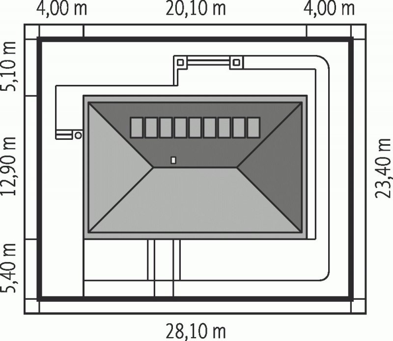 - Min. wymiary działki 28.10x23.40 m