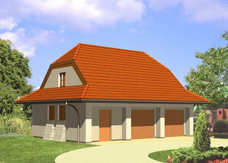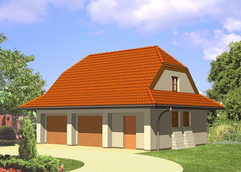 Wolnostojący, niepodpiwniczony garaż przeznaczony na dwa samochody.
