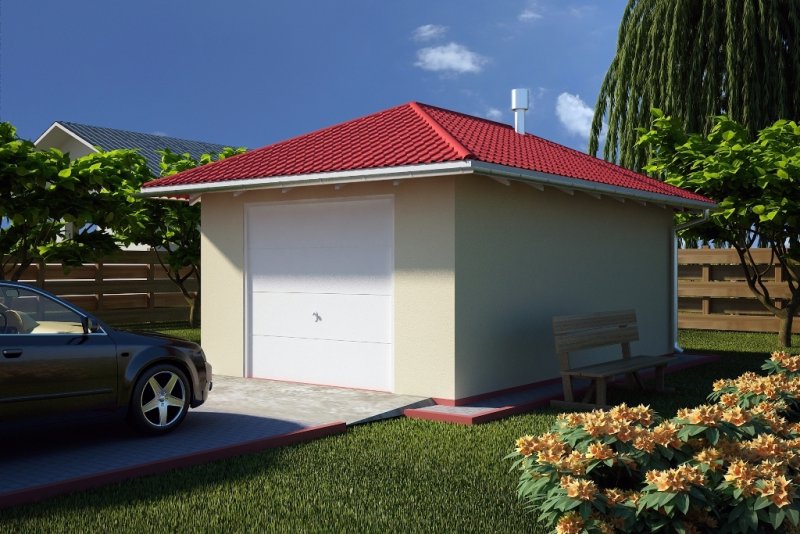 Projekt garażu jednostanowiskowego, parterowego, niepodpiwniczonego, przeznaczonego dla samochodów osobowych. Do projektu dołączone jest zestawienie: stali, więźby dachowej oraz stolarki drzwiowej i okiennej, jak równieżbezpłatna zgoda na dokonanie zmian.