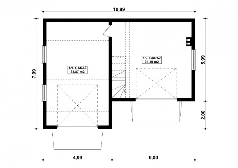 Projekt garażu dwustanowiskowego, parterowego, niepodpiwniczonego z poddaszem użytkowym, przeznaczonego dla samochodów dostawczych i osobowych z pomieszczeniem gospodarczym. Do projektu dołączone jest zestawienie: stali, więźby dachowej oraz stolarki drzwiowej i okiennej, jak równieżbezpłatna zgoda na dokonanie zmian.