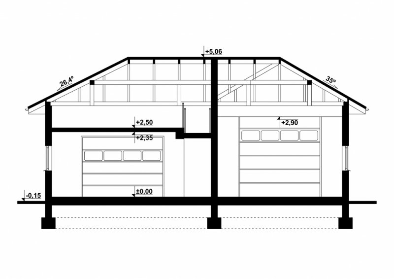 - Kąt nachylenia dachu 26.50°