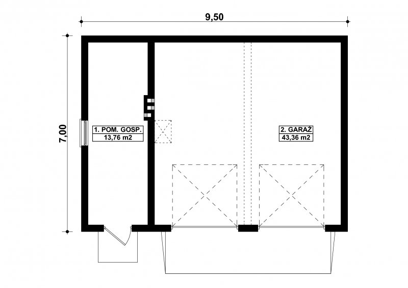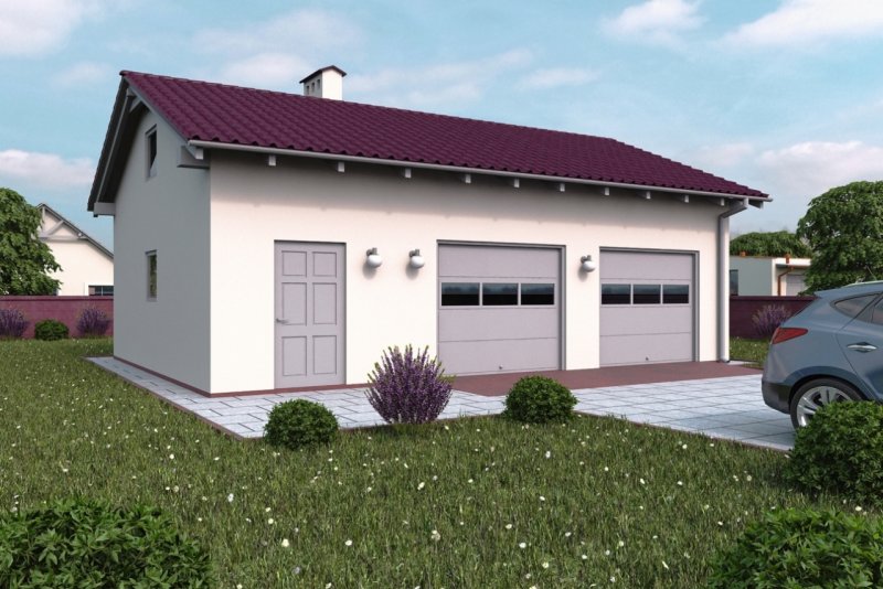 Projekt garażu dwustanowiskowego, parterowego, niepodpiwniczonego z poddaszem użytkowym, przeznaczonego dla samochodów osobowych z dwoma pomieszczeniami gospodarczymi i łazienką. Do projektu dołączone jest zestawienie: stali, więźby dachowej oraz stolarki drzwiowej i okiennej, jak równieżbezpłatna zgoda na dokonanie zmian.