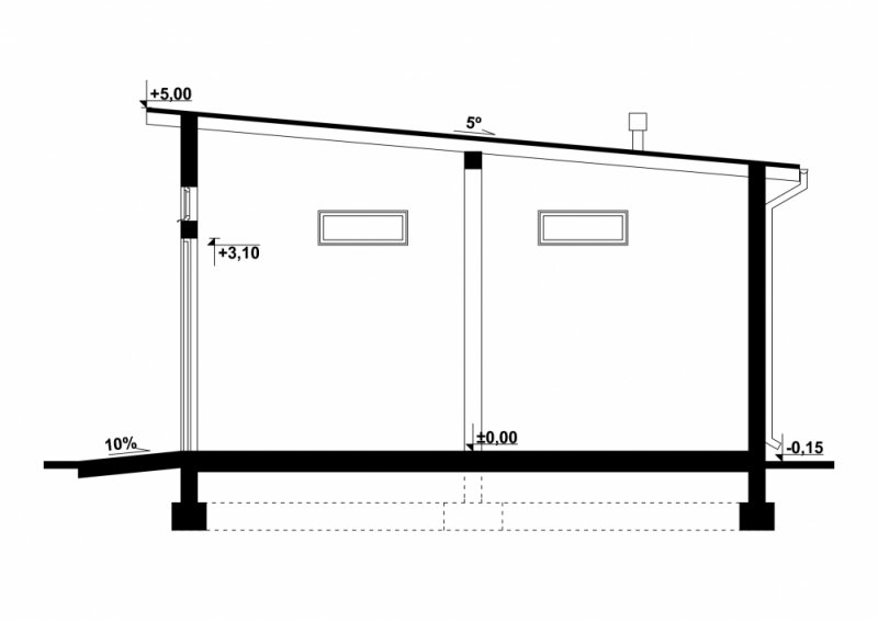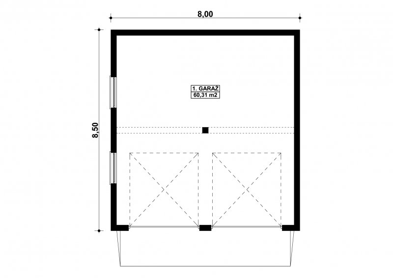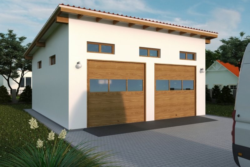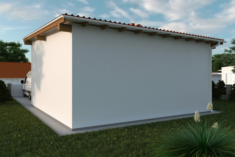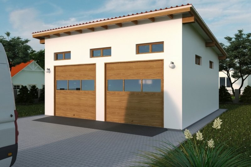 Projekt garażu dwustanowiskowego, parterowego, niepodpiwniczonego, przeznaczonego dla samochodów dostawczych. Do projektu dołączone jest zestawienie: stali, więźby dachowej oraz stolarki drzwiowej i okiennej, jak równieżbezpłatna zgoda na dokonanie zmian.