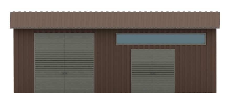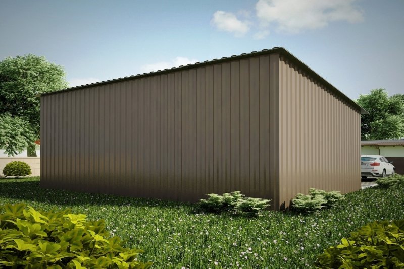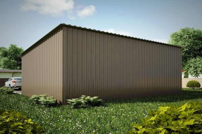 Budynek konstrukcji stalowej. Ściany z blachy trapezowej „t-18”. Bramy o wymiarach 2,20x2,20m i 3,00x3,00m. Więźba dachowa jednospadowa, stalowa - kratownica, pokryta blachą trapezową.