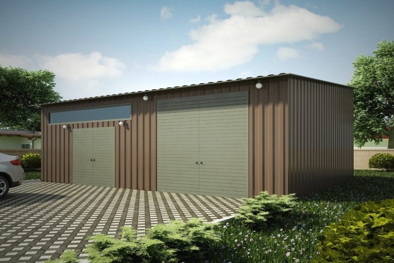 Projekt garażu dwustanowiskowego, parterowego, niepodpiwniczonego, przeznaczonego dla samochodów dostawczych i osobowych. Do projektu dołączone jest zestawienie: stali, stolarki drzwiowej i okiennej, jak równieżbezpłatna zgoda na dokonanie zmian.