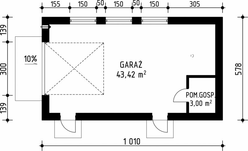 Projekt garażu jednostanowiskowego, parterowego, nie podpiwniczonego, przeznaczonego dla samochodów osobowych z pomieszczeniem gospodarczym. Do projektu dołączone jest zestawienie: stali, więźby dachowej oraz stolarki drzwiowej i okiennej, jak równieżbezpłatna zgoda na dokonanie zmian.