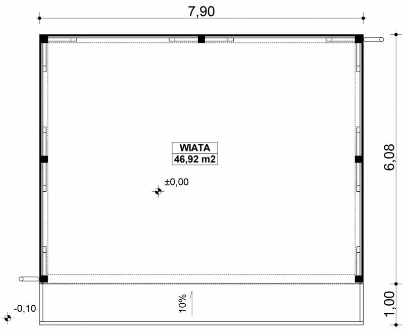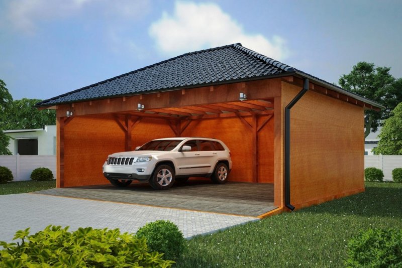 Projekt wiaty drewnianej, przeznaczonej dla samochodów osobowych. Do projektu dołączone jest zestawienie: podstawowych materiałów konstrukcyjnych i więźby dachowej, jak równieżbezpłatna zgoda na dokonanie zmian.