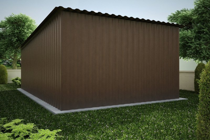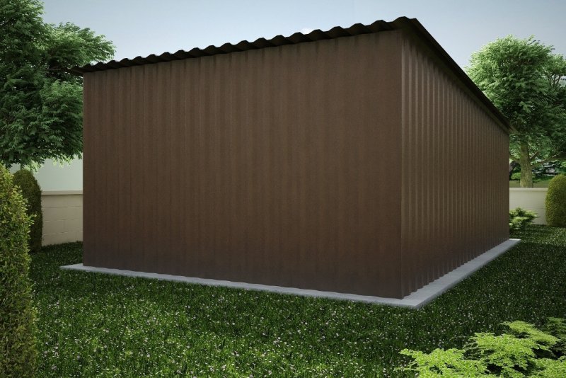 Budynek konstrukcji stalowej. Ściany z blachy trapezowej „T-18”. Brama o wymiarach 2,60x2,15m. Więźba dachowa jednospadowa, stalowa, pokryta blachą trapezową.