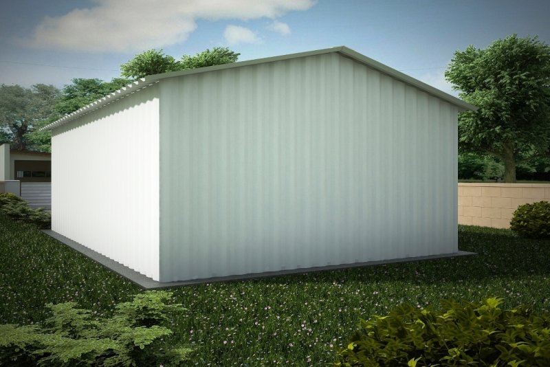 Budynek konstrukcji stalowej. Ściany z blachy trapezowej „T-18”. Brama o wymiarach 2,60x2,15m. Więźba dachowa dwuspadowa, stalowa, pokryta blachą trapezową.