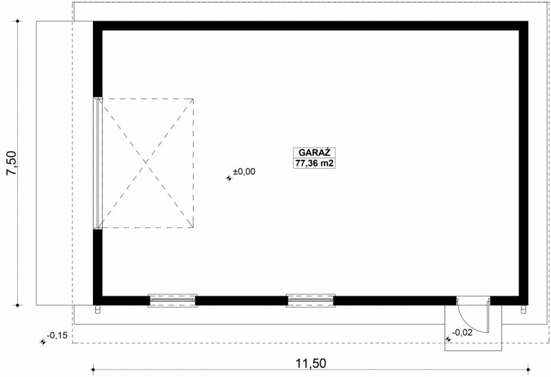 Projekt garażu jednostanowiskowego, parterowego, niepodpiwniczonego, przeznaczonego dla samochodów osobowych. Do projektu dołączone jest zestawienie: stali, więźby dachowej oraz stolarki drzwiowej, jak również bezpłatna zgoda na dokonanie zmian.