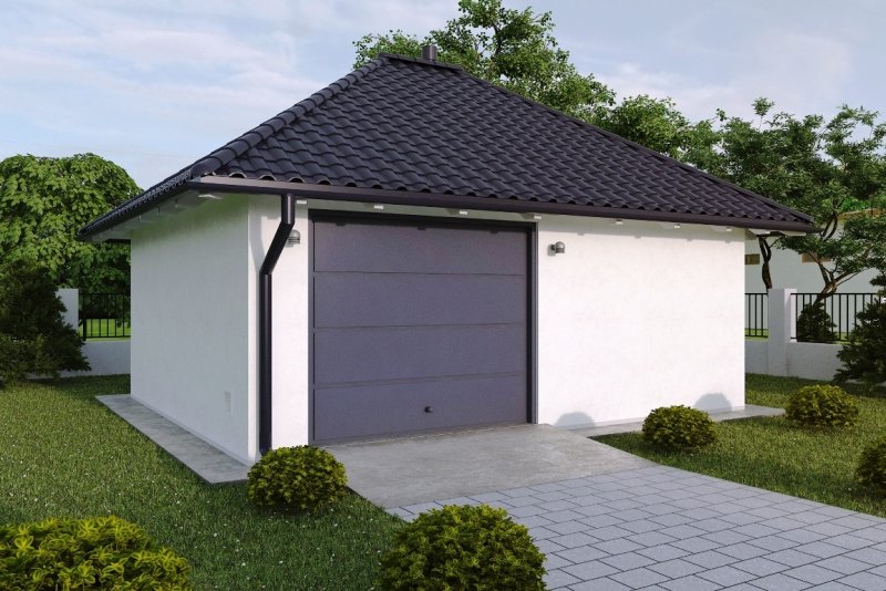 Budynek wykonany w technologii tradycyjnej. Ściany murowane z bloczków z betonu komórkowego grubości 24cm. Brama o wymiarach 2,40x2,20m. Więźba dachowa czterospadowa, drewniana, pokryta blachodachówką.