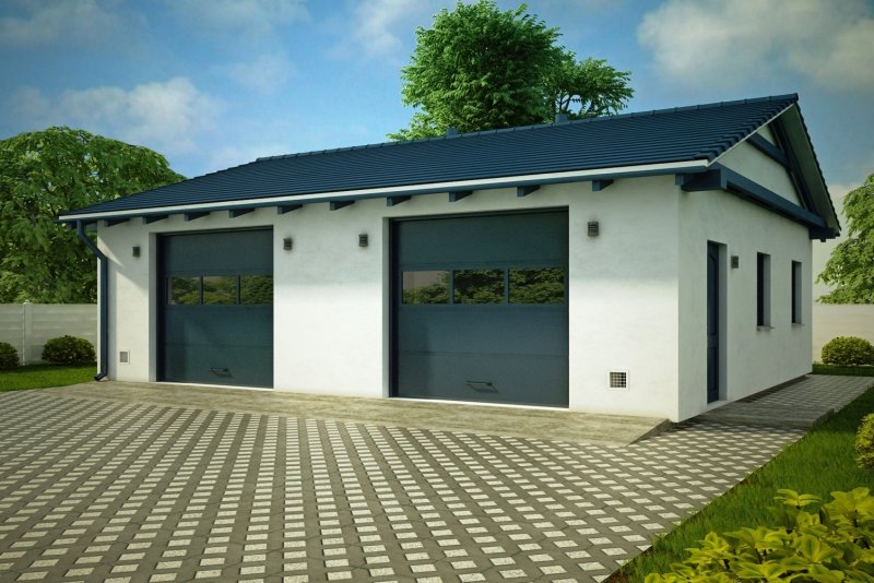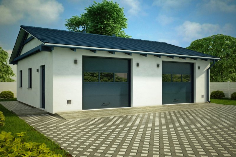 Projekt garażu dwustanowiskowego, parterowego, niepodpiwniczonego, przeznaczonego dla samochodów osobowych. Do projektu dołączone jest zestawienie: stali, więźby dachowej oraz stolarki drzwiowej i okiennej, jak równieżbezpłatna zgoda na dokonanie zmian.