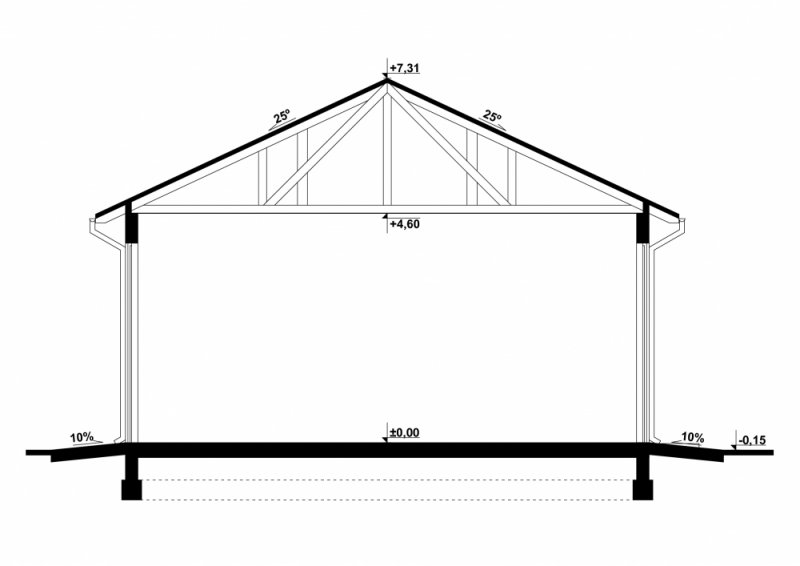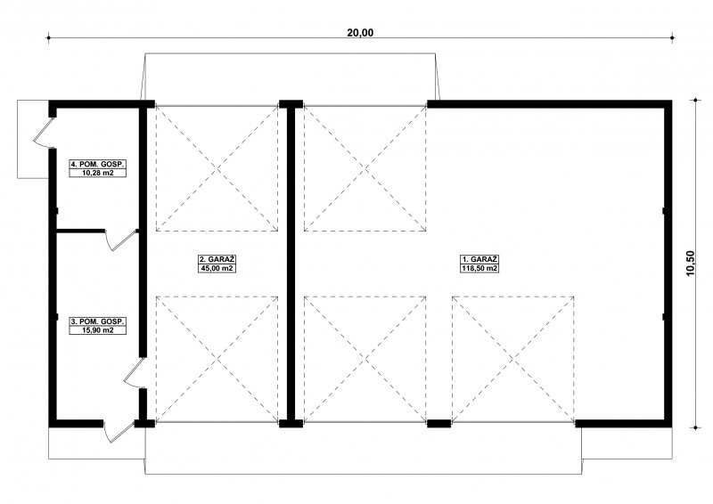 Projekt garażu trzystanowiskowego, parterowego, niepodpiwniczonego, przeznaczonego dla samochodów ciężarowych z dwoma pomieszczeniami gospodarczymi. Do projektu dołączone jest zestawienie: stali, więźby dachowej oraz stolarki drzwiowej i okiennej, jak równieżbezpłatna zgoda na dokonanie zmian.