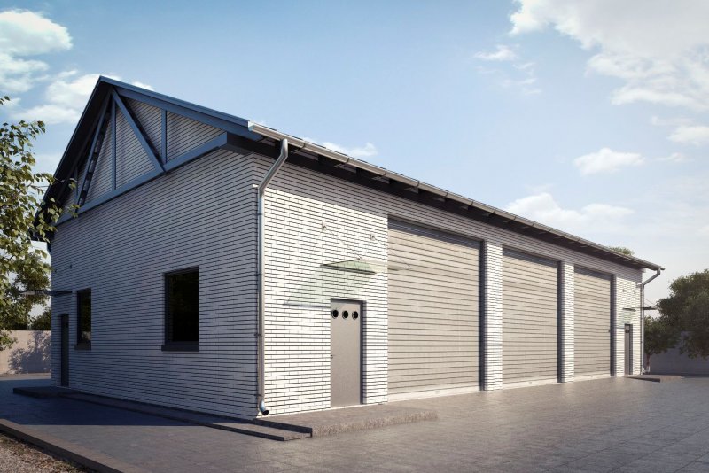 Budynek wykonany w technologii tradycyjnej. Ściany murowane z pustaków ceramicznych „POROTHERM” grubości 25cm i 12cm. Bramy o wymiarach 4,00x4,00m. Więźba dachowa dwuspadowa, drewniana, pokryta blachą trapezową.
