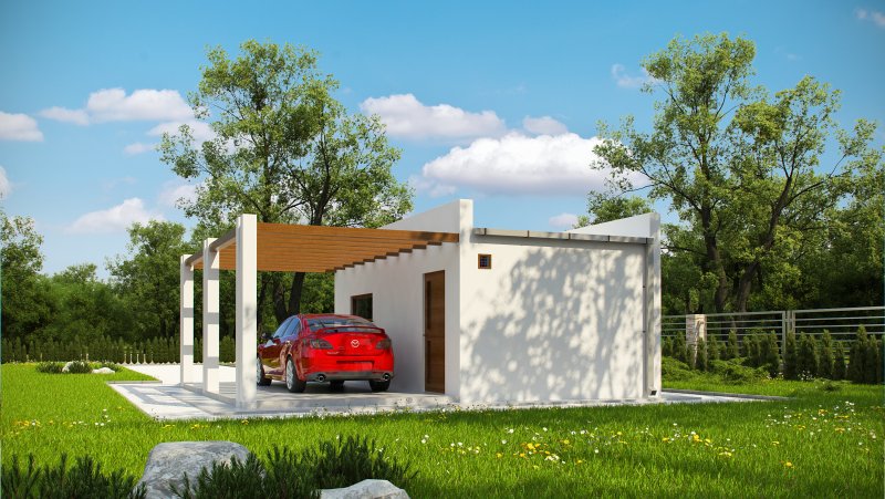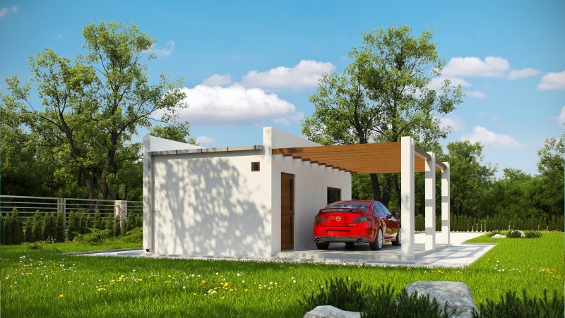 Projekt garażu jednostanowiskowego, parterowego, niepodpiwniczonego, przeznaczonego dla samochodów osobowych. Do projektu dołączone jest zestawienie: stali, więźby dachowej oraz stolarki drzwiowej i okiennej, jak również bezpłatna zgoda na dokonanie zmian.