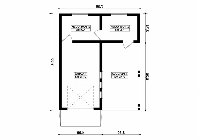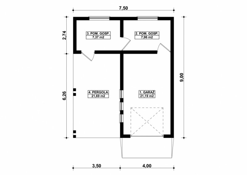 Projekt garażu jednostanowiskowego, parterowego, niepodpiwniczonego, przeznaczonego dla samochodów osobowych z dwoma pomieszczeniami gospodarczymi. Do projektu dołączone jest zestawienie: stali, więźby dachowej oraz stolarki drzwiowej i okiennej, jak również bezpłatna zgoda na dokonanie zmian.