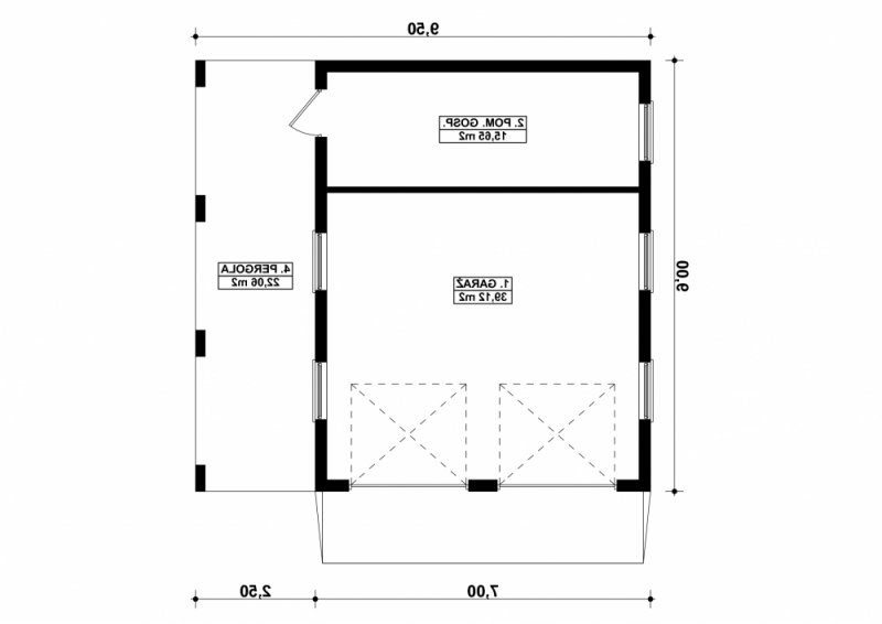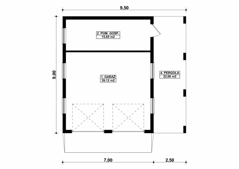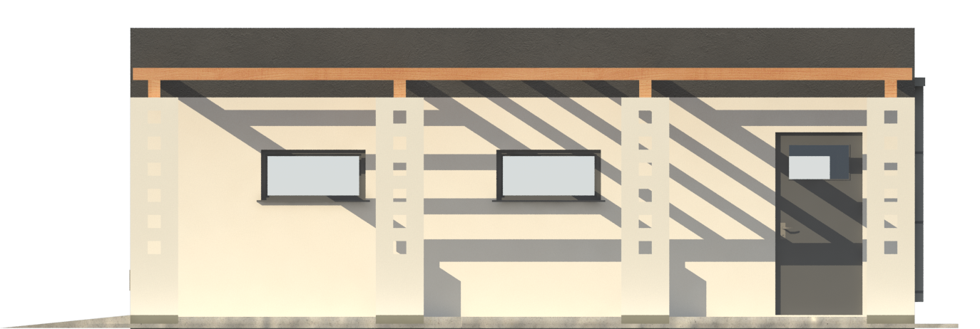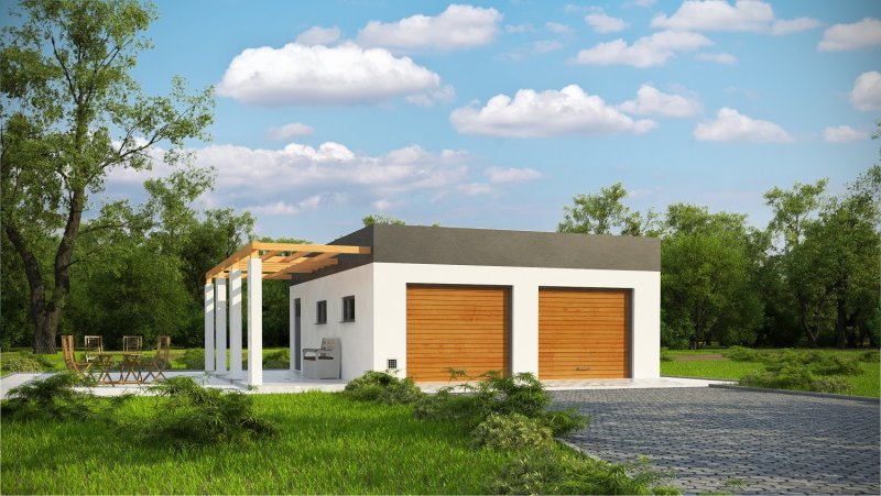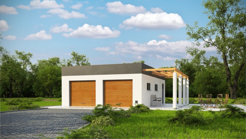 Projekt garażu dwustanowiskowego, parterowego, niepodpiwniczonego, przeznaczonego dla samochodów osobowych z pomieszczeniem gospodarczym. Do projektu dołączone jest zestawienie: stali, więźby dachowej oraz stolarki drzwiowej i okiennej, jak równieżbezpłatna zgoda na dokonanie zmian.