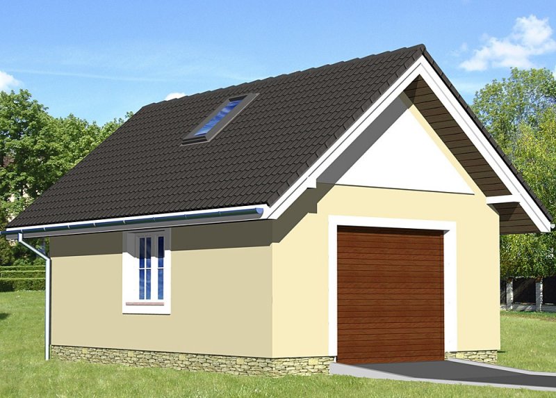 Wolnostojący, niepodpiwniczony garaż jednostanowiskowy.