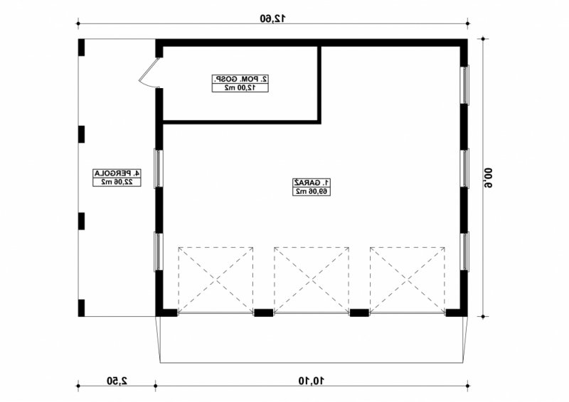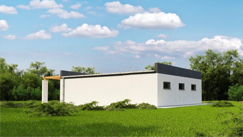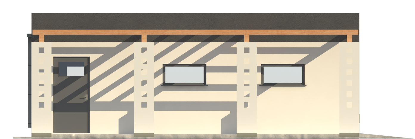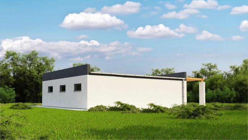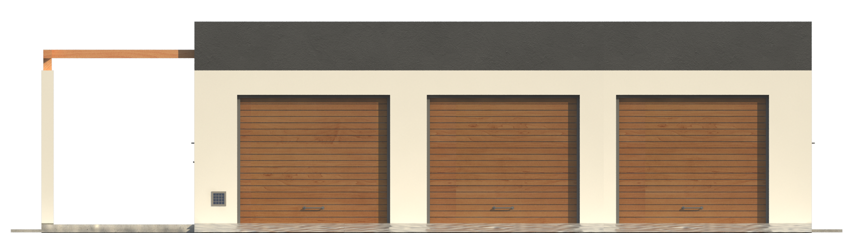 Projekt garażu trzystanowiskowego, parterowego, niepodpiwniczonego, przeznaczonego dla samochodów osobowych z pomieszczeniem gospodarczym. Do projektu dołączone jest zestawienie: stali, więźby dachowej oraz stolarki drzwiowej i okiennej, jak również bezpłatna zgoda na dokonanie zmian.