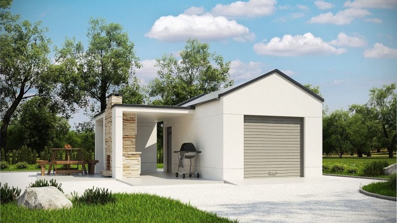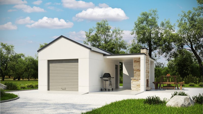Projekt garażu jednostanowiskowego, parterowego, niepodpiwniczonego, przeznaczonego dla samochodów osobowych z grillem. Do projektu dołączone jest zestawienie: stali, więźby dachowej oraz stolarki drzwiowej i okiennej, jak również bezpłatna zgoda na dokonanie zmian.