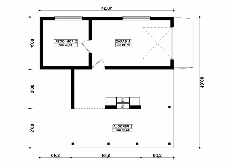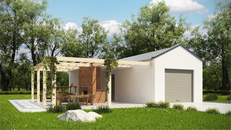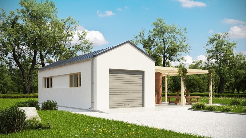 Projekt garażu jednostanowiskowego, parterowego, niepodpiwniczonego, przeznaczonego dla samochodów osobowych z pomieszczeniem gospodarczym i grillem. Do projektu dołączone jest zestawienie: stali, więźby dachowej oraz stolarki drzwiowej i okiennej, jak również bezpłatna zgoda na dokonanie zmian.