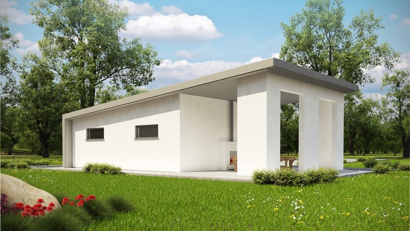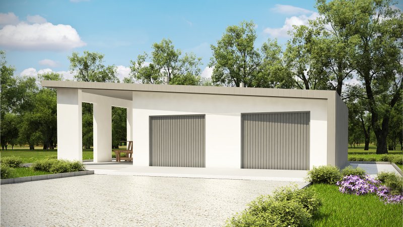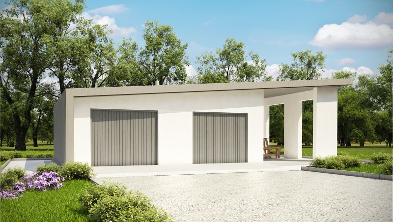 Projekt garażu dwustanowiskowego, parterowego, niepodpiwniczonego, przeznaczonego dla samochodów osobowych z grillem. Do projektu dołączone jest zestawienie: stali, więźby dachowej oraz stolarki drzwiowej i okiennej, jak również bezpłatna zgoda na dokonanie zmian.