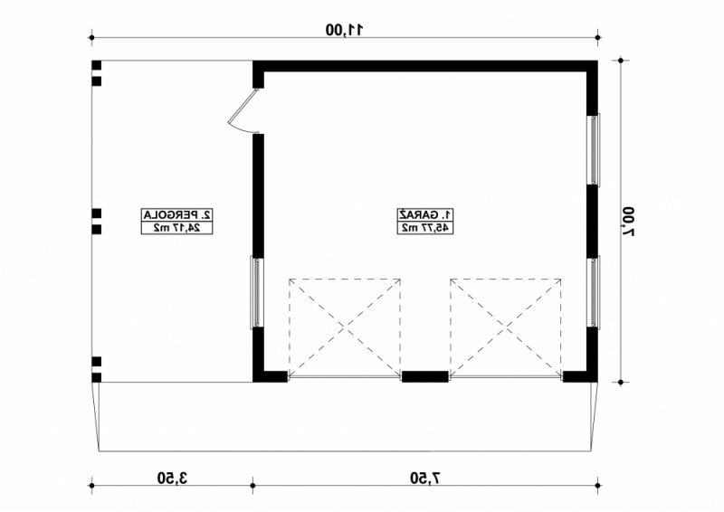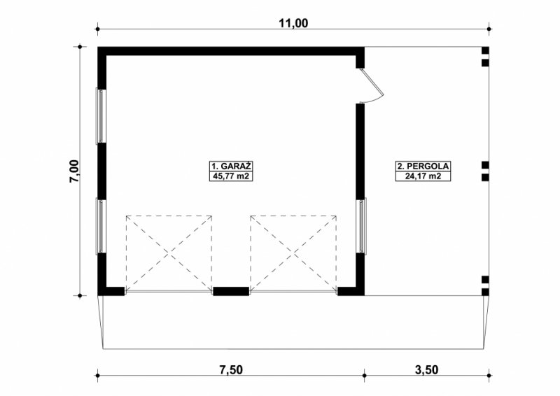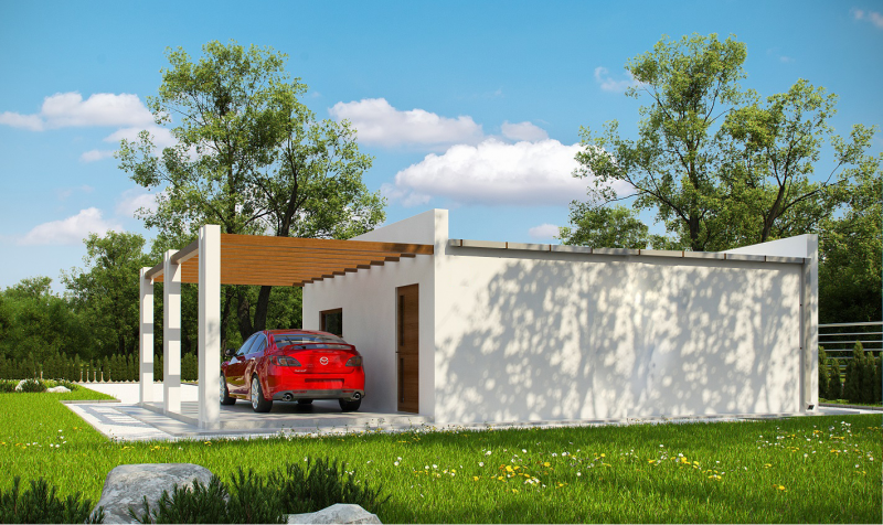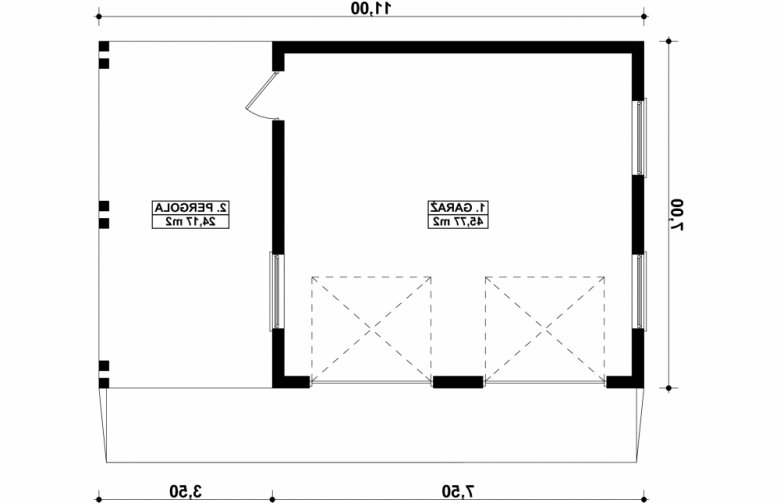 Projekt garażu dwustanowiskowego, parterowego, niepodpiwniczonego, przeznaczonego dla samochodów osobowych. Do projektu dołączone jest zestawienie: stali, więźby dachowej oraz stolarki drzwiowej i okiennej, jak również bezpłatna zgoda na dokonanie zmian.