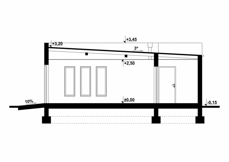- Wysokość budynku 3.45 m