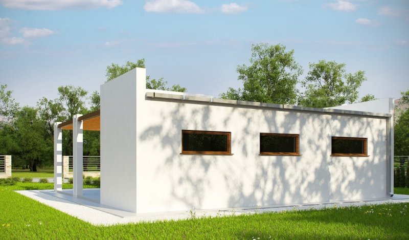 Budynek wykonany w technologii tradycyjnej. Ściany murowane z bloczków z betonu komórkowego grubości 24cm. Brama o wymiarach 5,00x2,20m. Słupy żelbetowe. Więźba dachowa jednospadowa, drewniana, pokryta blachą trapezową.