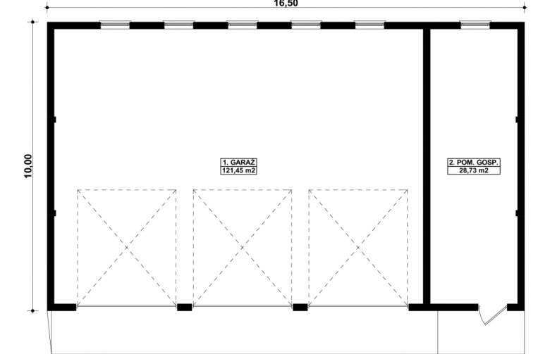 Projekt garażu trzystanowiskowego, parterowego, niepodpiwniczonego, przeznaczonego dla samochodów ciężarowych z pomieszczeniem gospodarczym. Do projektu dołączone jest zestawienie: stali, więźby dachowej oraz stolarki drzwiowej i okiennej, jak równieżbezpłatna zgoda na dokonanie zmian.