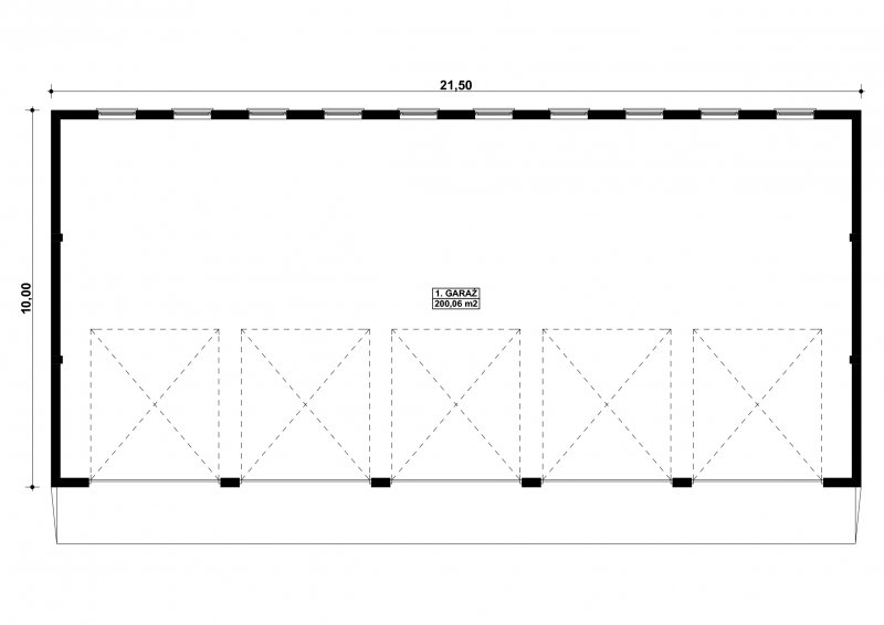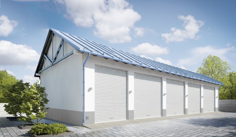 Projekt garażu pięciostanowiskowego, parterowego, niepodpiwniczonego, przeznaczonego dla samochodów ciężarowych. Do projektu dołączone jest zestawienie: stali, więźby dachowej oraz stolarki drzwiowej i okiennej, jak równieżbezpłatna zgoda na dokonanie zmian.