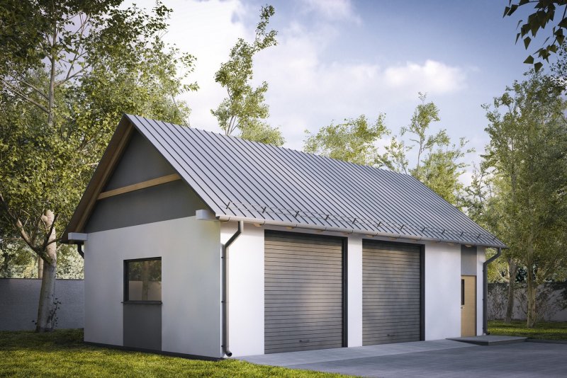 Projekt garażu dwustanowiskowego, parterowego, niepodpiwniczonego, przeznaczonego dla samochodów ciężarowych. Do projektu dołączone jest zestawienie: stali, więźby dachowej oraz stolarki drzwiowej i okiennej, jak równieżbezpłatna zgoda na dokonanie zmian.