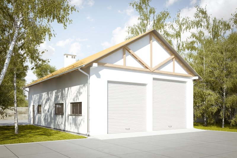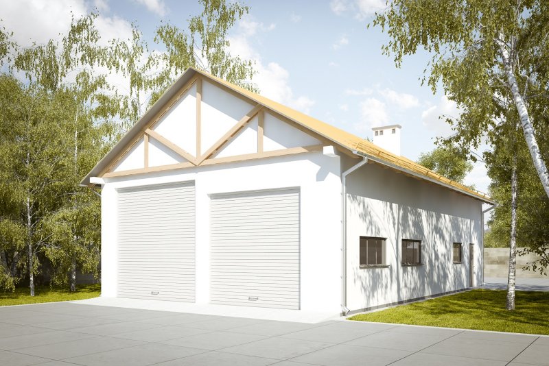 Projekt garażu dwustanowiskowego, parterowego, niepodpiwniczonego, przeznaczonego dla samochodów ciężarowych z dwoma pomieszczeniami gospodarczymi. Do projektu dołączone jest zestawienie: stali, więźby dachowej oraz stolarki drzwiowej i okiennej, jak równieżbezpłatna zgoda na dokonanie zmian.