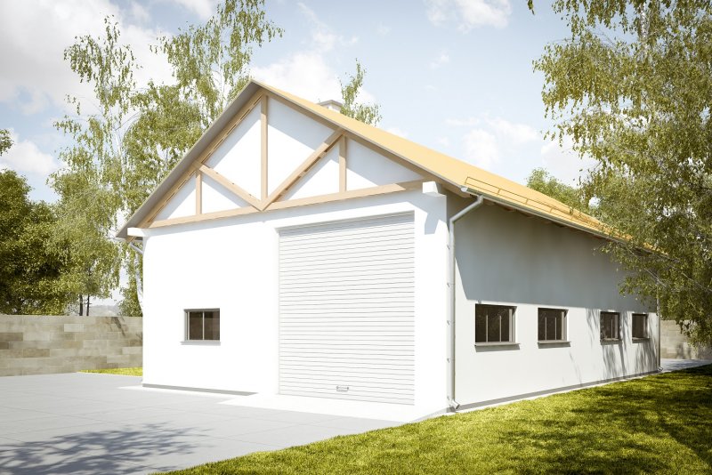 Budynek wykonany w technologii tradycyjnej Ściany murowane z bloczków z betonu komórkowego grubości 24cm. Bramy o wymiarach 4,00x4,00m i 3,50x3,50m. Komin z cegły ceramicznej pełnej. Więźba dachowa dwuspadowa, drewniana, pokryta blachą trapezową.