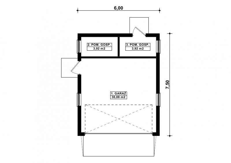 Projekt garażu dwustanowiskowego, parterowego, niepodpiwniczonego, przeznaczonego dla samochodów osobowych z dwoma pomieszczeniem gospodarczym. Do projektu dołączone jest zestawienie: stali, więźby dachowej oraz stolarki drzwiowej i okiennej, jak równieżbezpłatna zgoda na dokonanie zmian.