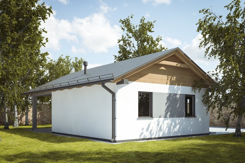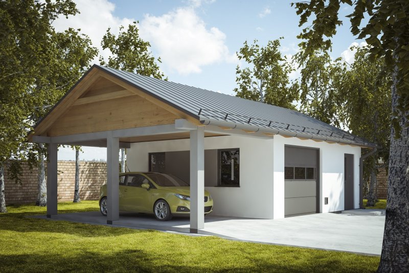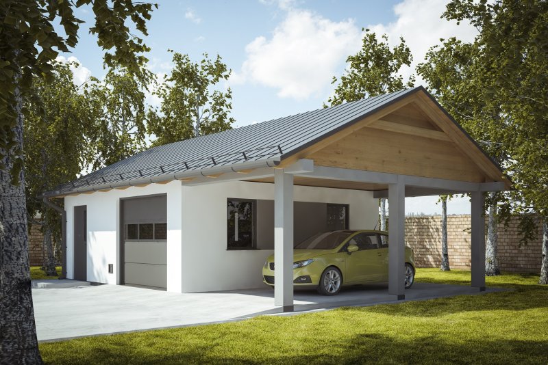 Projekt garażu jednostanowiskowego, parterowego, niepodpiwniczonego, przeznaczonego dla samochodów osobowych z dwoma pomieszczeniami gospodarczymi i wiatą. Do projektu dołączone jest zestawienie: stali, więźby dachowej oraz stolarki drzwiowej i okiennej, jak również bezpłatna zgoda na dokonanie zmian.