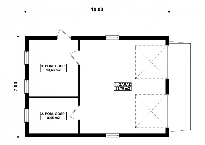 Projekt garażu dwustanowiskowego, parterowego, niepodpiwniczonego, przeznaczonego dla samochodów osobowych z dwoma pomieszczeniem gospodarczym. Do projektu dołączone jest zestawienie: stali, więźby dachowej oraz stolarki drzwiowej i okiennej, jak równieżbezpłatna zgoda na dokonanie zmian.