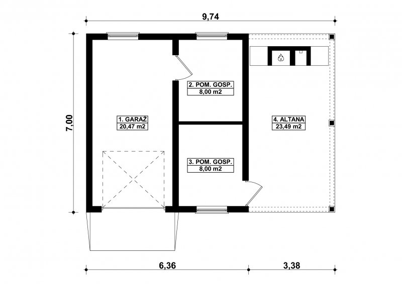 - Min. wymiary działki 9.74x7.00 m