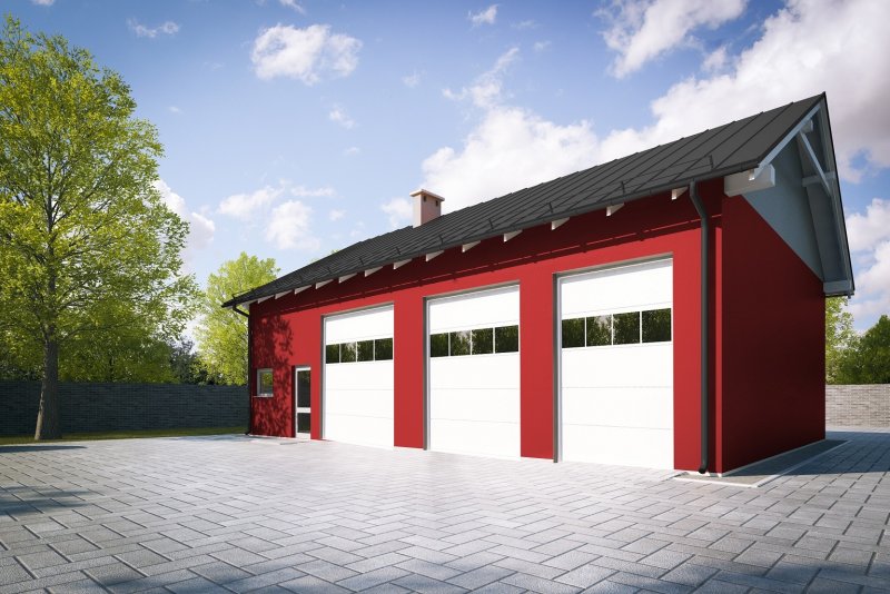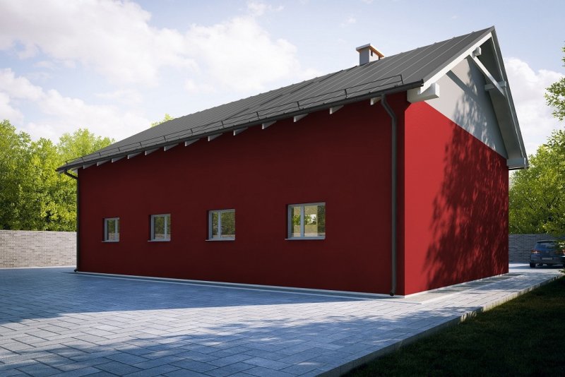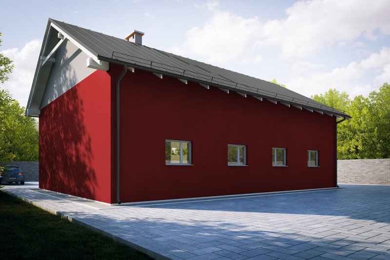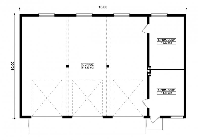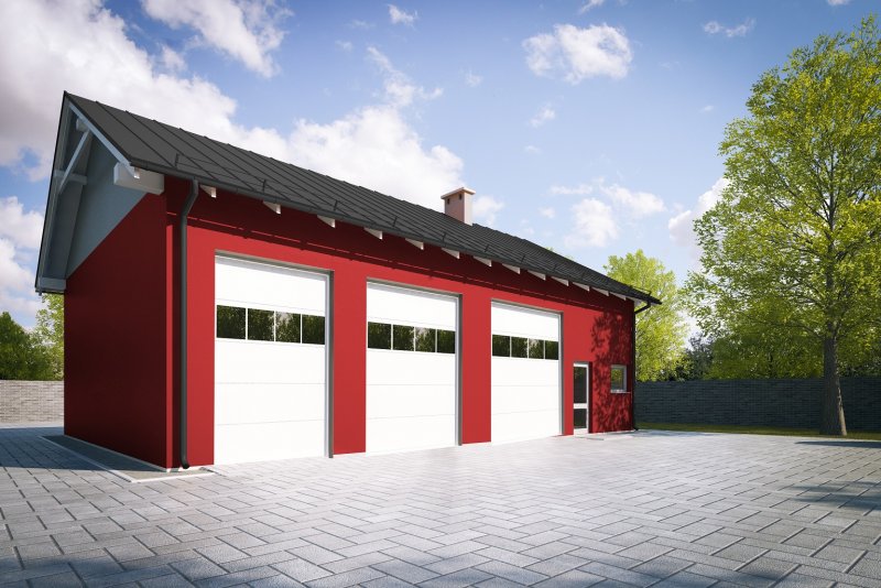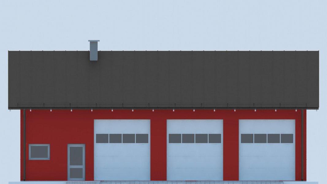 Projekt garażu trzystanowiskowego, parterowego, niepodpiwniczonego, przeznaczonego dla samochodów dostawczych z dwoma pomieszczeniami gospodarczymi. Do projektu dołączone jest zestawienie: stali, więźby dachowej oraz stolarki drzwiowej i okiennej, jak również bezpłatna zgoda na dokonanie zmian.