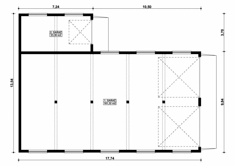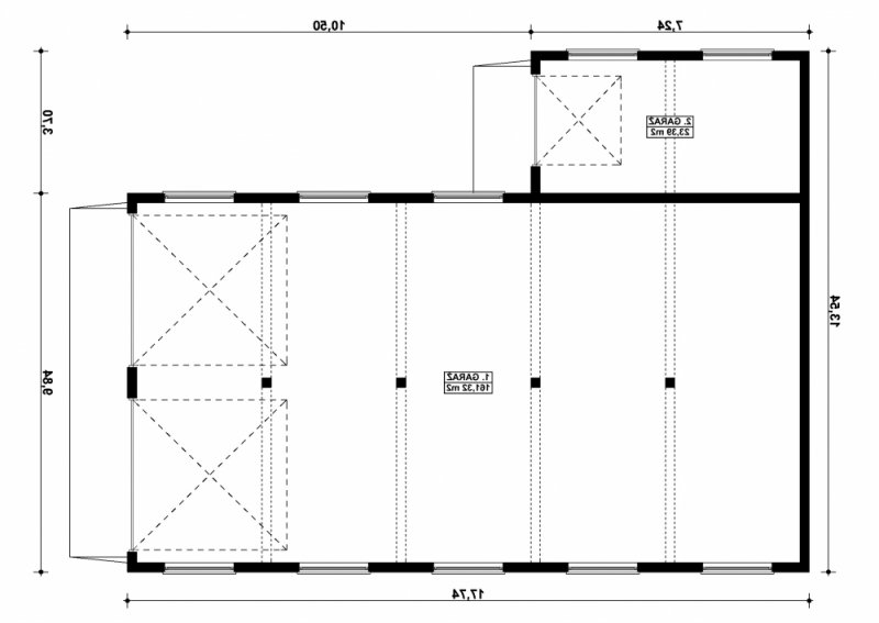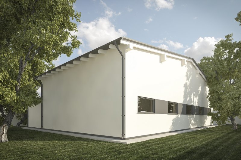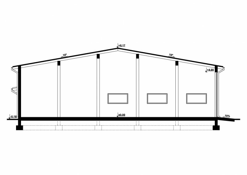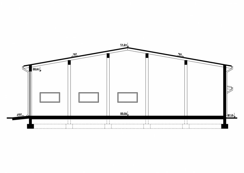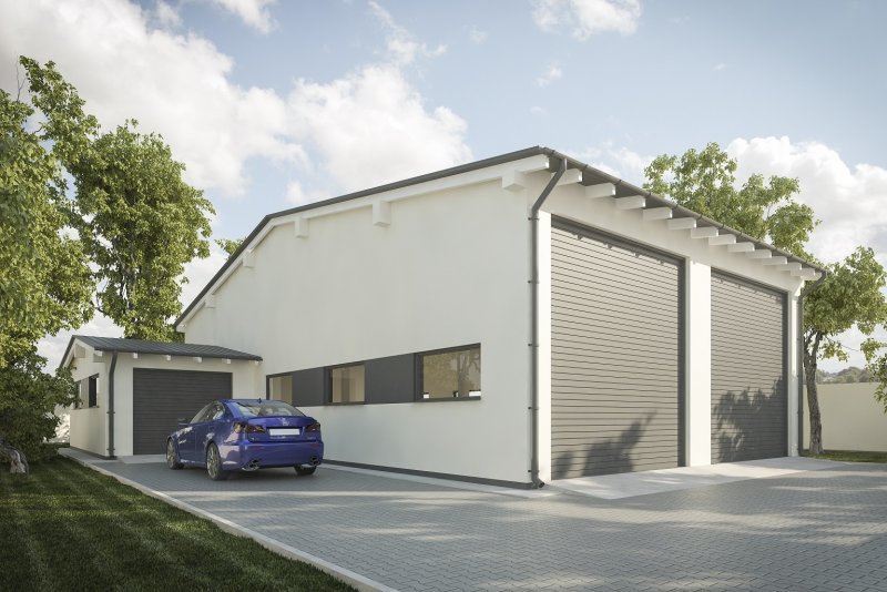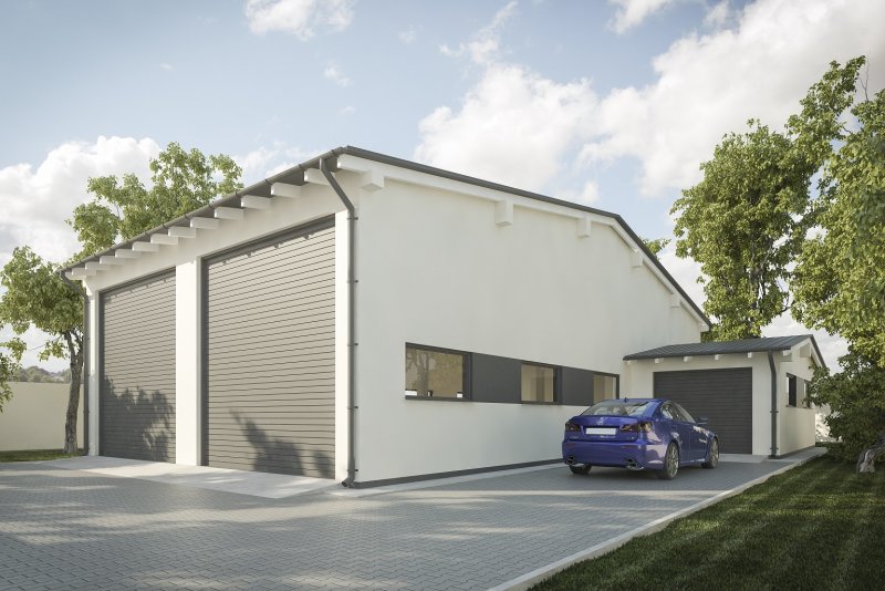 Projekt garażu trzystanowiskowego, parterowego, niepodpiwniczonego, przeznaczonego dla samochodów ciężarowych i osobowych. Do projektu dołączone jest zestawienie: stali, więźby dachowej oraz stolarki drzwiowej i okiennej, jak równieżbezpłatna zgoda na dokonanie zmian.