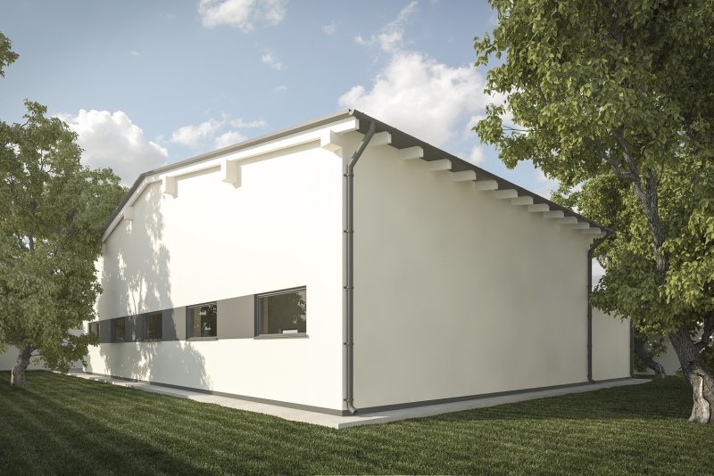 Budynek wykonany w technologii tradycyjnej. Ściany murowane z bloczków z betonu komórkowego grubości 24cm. Bramy o wymiarach 4,00x4,00m i 2,50x2,20m. Słupy i podciągi żelbetowe. Więźba dachowa dwuspadowa, drewniana, pokryta blachą trapezową.