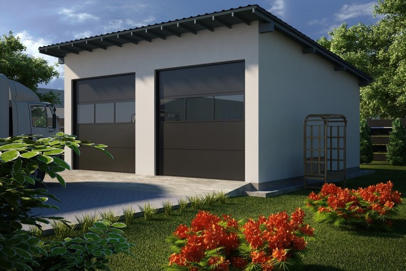 Projekt garażu dwustanowiskowego, parterowego, niepodpiwniczonego, przeznaczonego dla samochodów dostawczych. Do projektu dołączone jest zestawienie: stali, więźby dachowej oraz stolarki drzwiowej, jak równieżbezpłatna zgoda na dokonanie zmian.