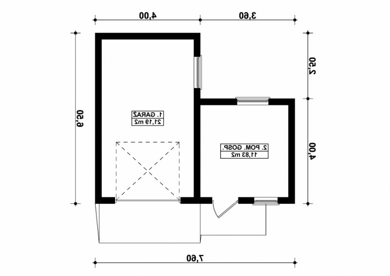 Projekt garażu jednostanowiskowego, parterowego, przeznaczonego dla samochodów osobowych z pomieszczeniem gospodarczym. Do projektu dołączone jest zestawienie: stali, więźby dachowej oraz stolarki drzwiowej i okiennej, jak również bezpłatna zgoda na dokonanie zmian.