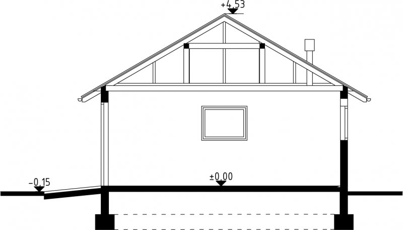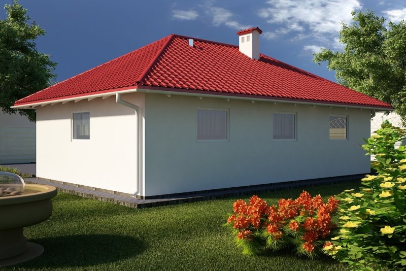 Projekt budynku parterowego, niepodpiwniczonego, z trzema pomieszczeniami gospodarczymi. Do projektu dołączone jest zestawienie: stali, więźby dachowej oraz stolarki drzwiowej i okiennej, jak równieżbezpłatna zgoda na dokonanie zmian.