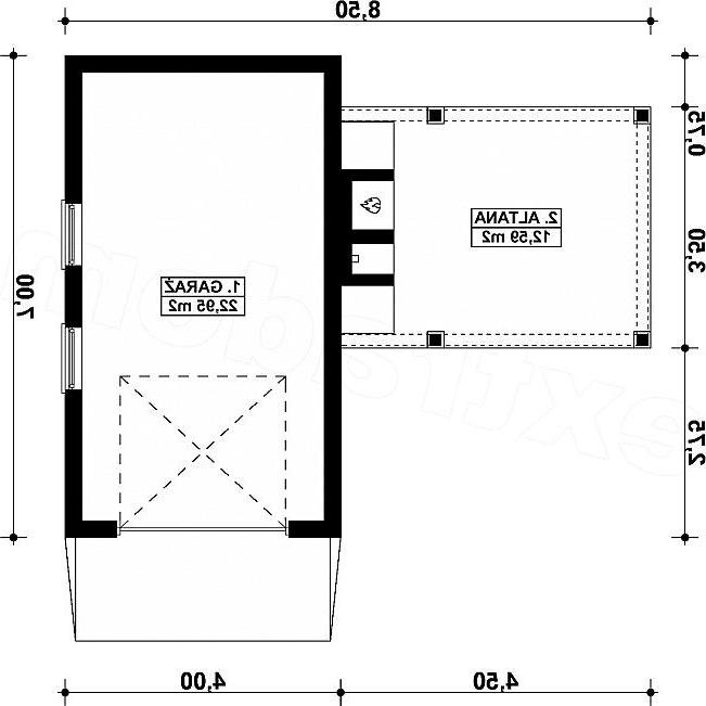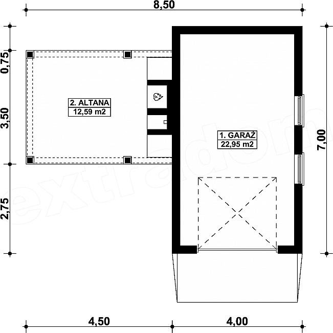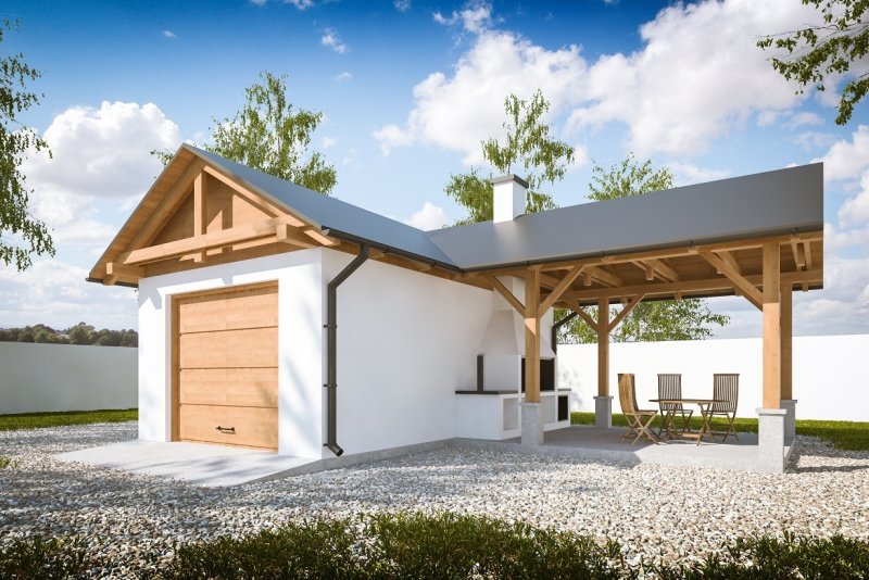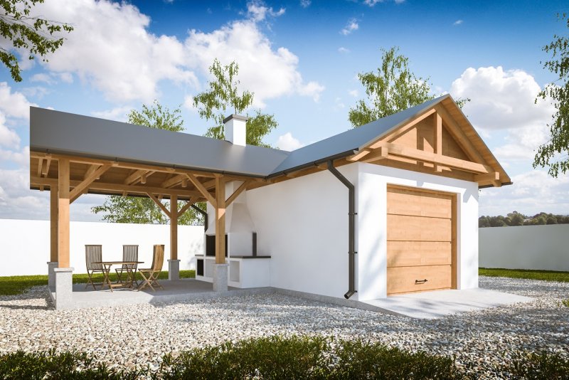 Projekt garażu jedostanowiskowego, parterowego, niepodpiwniczonego, przeznaczonego dla samochodów osobowych z altaną. Do projektu dołączone jest zestawienie: stali, więźby dachowej oraz stolarki drzwiowej i okiennej, jak również bezpłatna zgoda na dokonanie zmian.