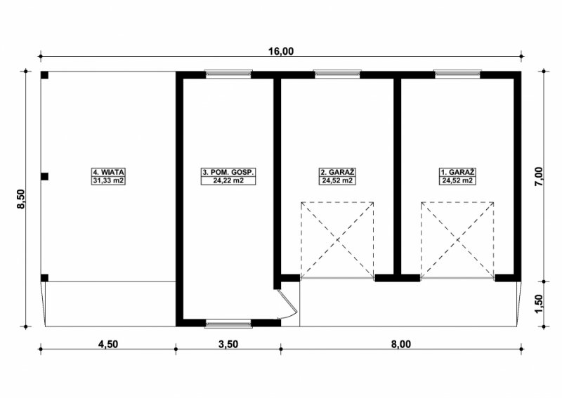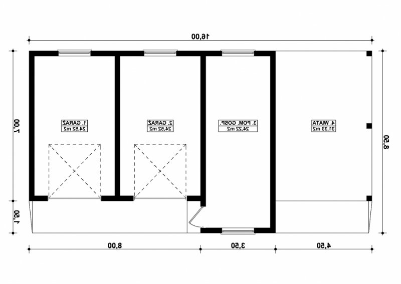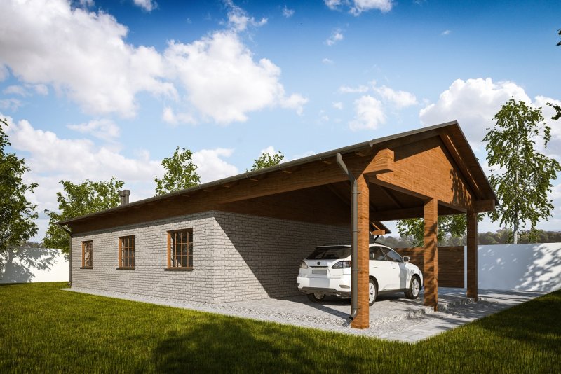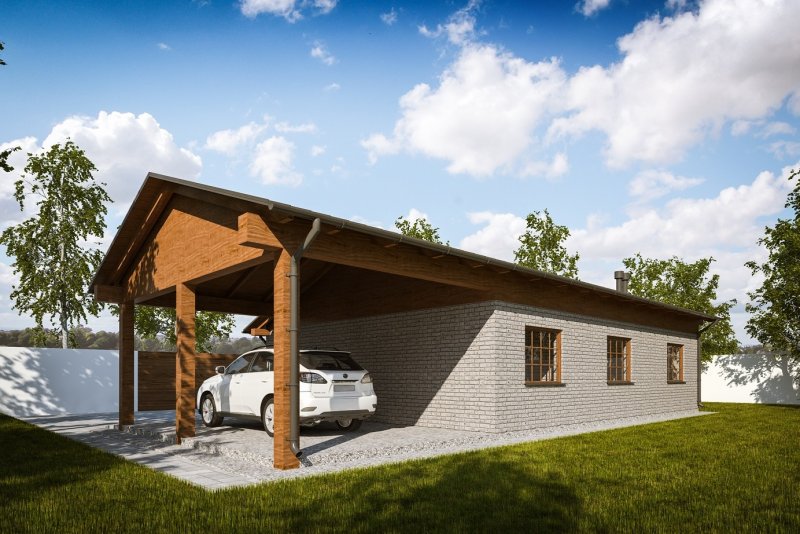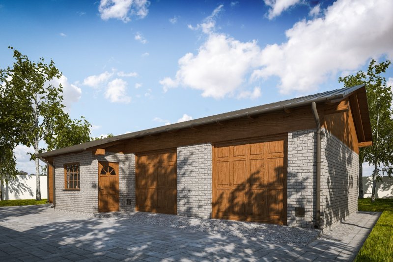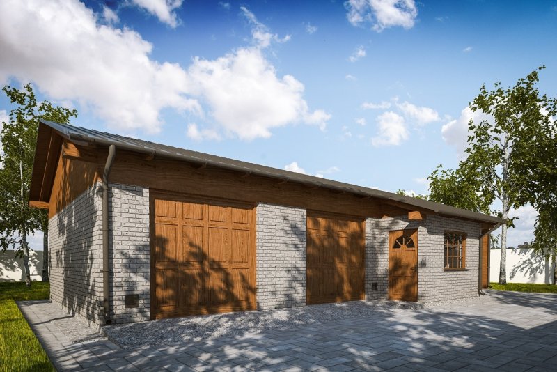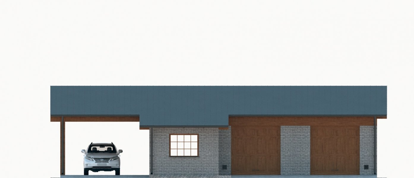 Projekt garażu dwustanowiskowego, parterowego, niepodpiwniczonego, przeznaczonego dla samochodów osobowych z pomieszczeniem gospodarczym i wiatą. Do projektu dołączone jest zestawienie: stali, więźby dachowej oraz stolarki drzwiowej i okiennej, jak również bezpłatna zgoda na dokonanie zmian.